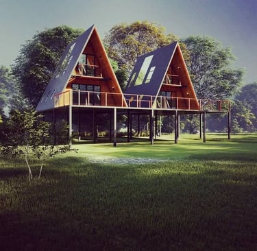 Explore chalés personalizados que unem design e sustentabilidade. Nosso objetivo é transformar espaços em lugares únicos, oferecendo design inovador, acabamentos diferenciados e a possibilidade de personalização total para que cada chalé seja verdadeiramente exclusivo.